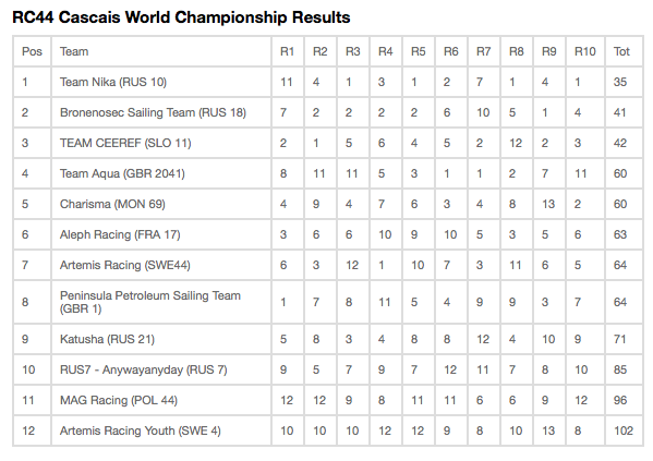 A worthy and popular winner was crowned today at the RC44 Cascais World Championship in Vladimir Prosikhin's Team Nika, following two final big wind, big wave races that made for a thrilling, albeit damp, conclusion to the regatta.